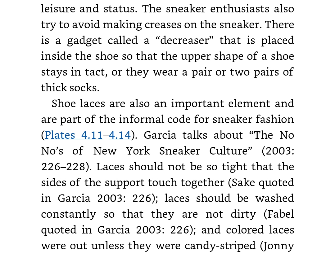 This book is based on research by the author into sneaker “subculture,” mainly in New York. The structure is very much thesis-style.