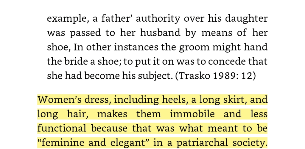 The copy I had was full of editing and grammatical errors (sooo many, ugh), which got quite annoying. After I got past that, I found the subject matter very interesting, and learnt a few new things about gender and footwear.
