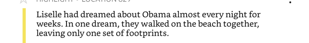 Right from the beginning, this is a book about race, almost exhaustingly so. I started to feel like I was immersed in a culture I cannot understand, and the feeling stayed with me through the book, particularly because of the treatment of race (from a black woman’s perspective, and I’m a black woman, so…) Sigh. Valid points were made, of course, but it all got a little tiresome for me to try to relate to, and got in the way of the story. I don’t wish it had been written differently, as this is clearly something that was important for the author to write into the story.