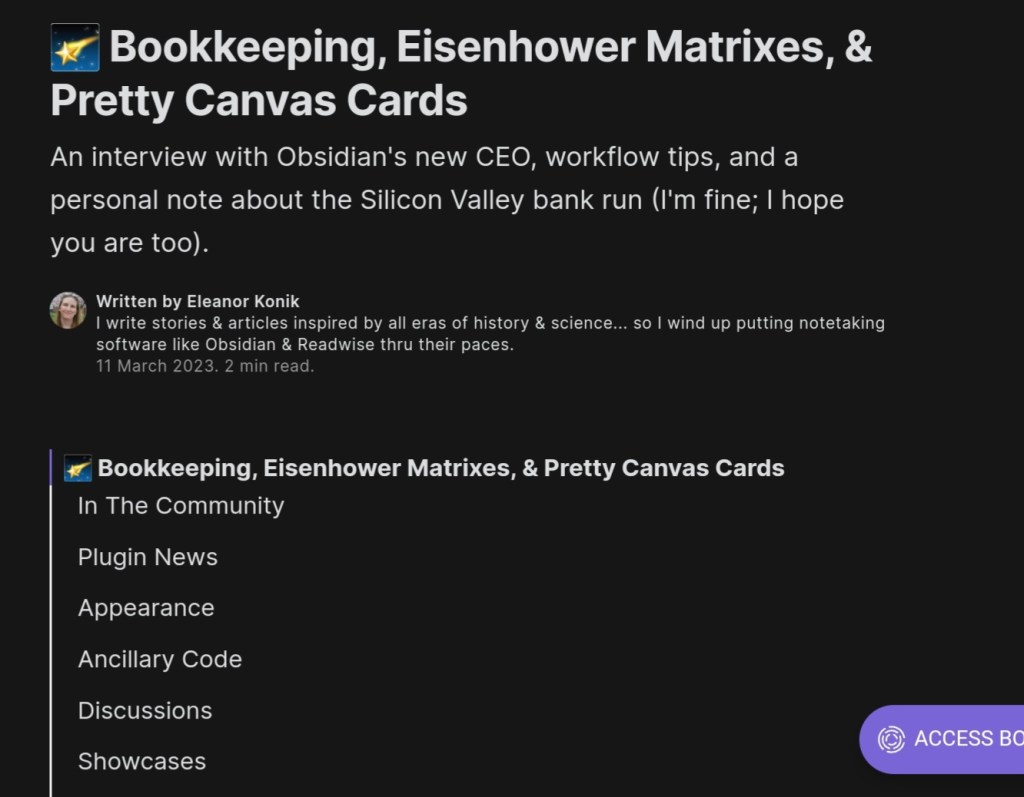 - The best newsletter to know what’s happening right now in Obsidian: Obsidian Iceberg
