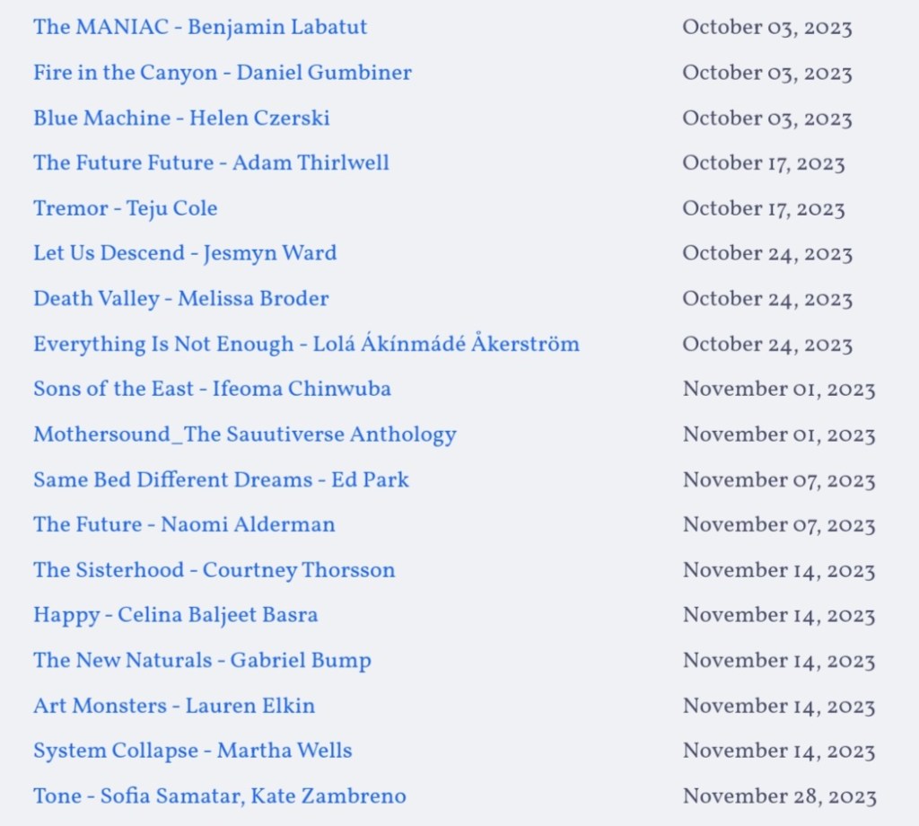 And here’s a list of other books I have my eye on, because 2023 is an embarrassment of riches: